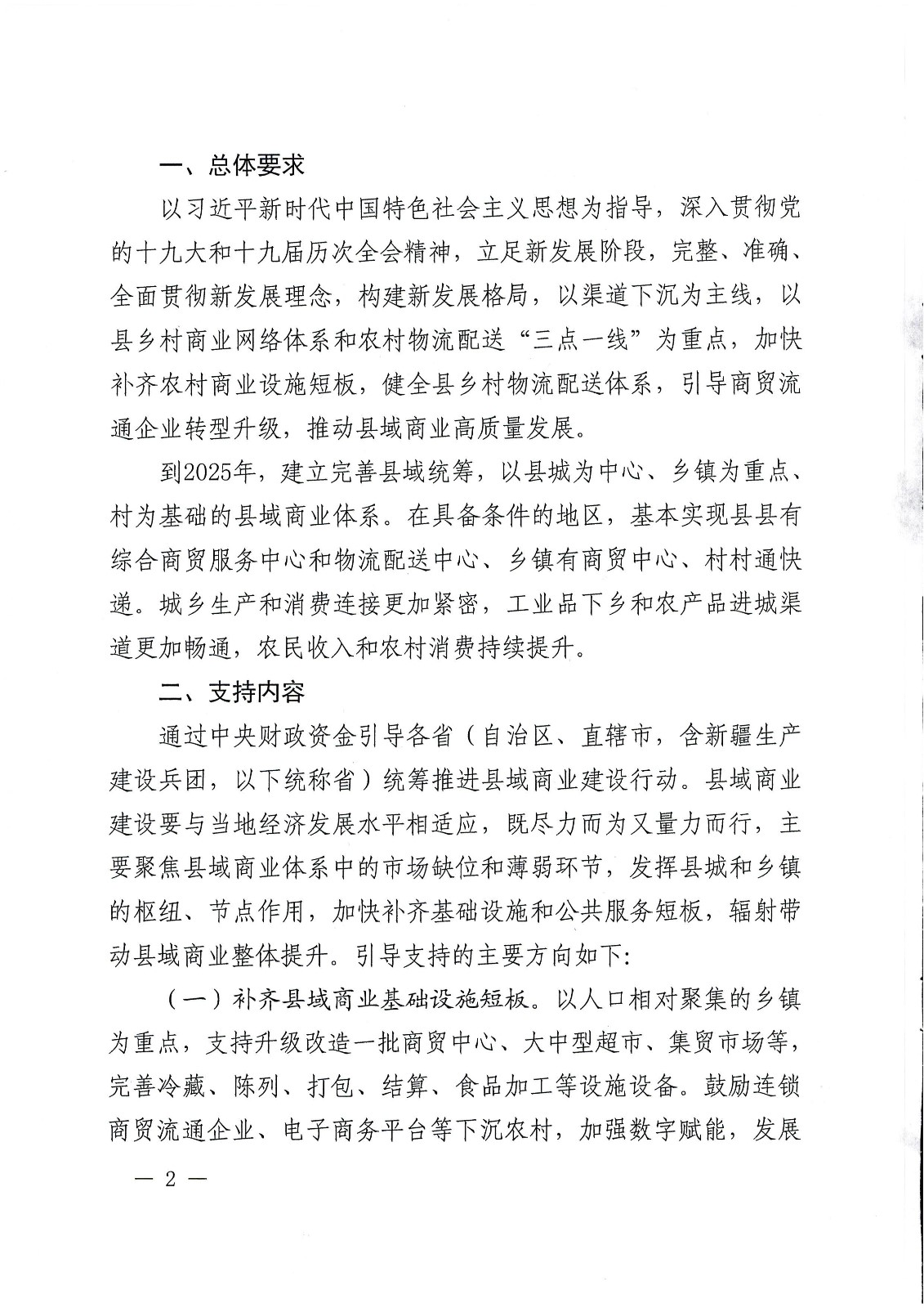 財政部、商務部、國家鄉村振興局關于支持實施縣域商業建設行動的通知